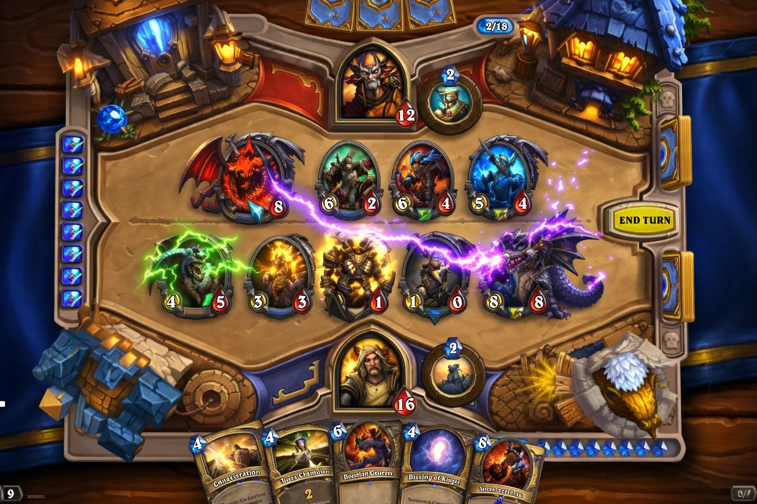 Визуальный стиль Hearthstone — это яркий, мультяшный, невероятно детализированный мир. Каждый элемент колоды — это маленькое произведение искусства с уникальной иллюстрацией. Анимация разыгрывания компонентов, атак и спецэффектов выполнена с таким вниманием к деталям, что каждый поединок превращается в зрелищное шоу.