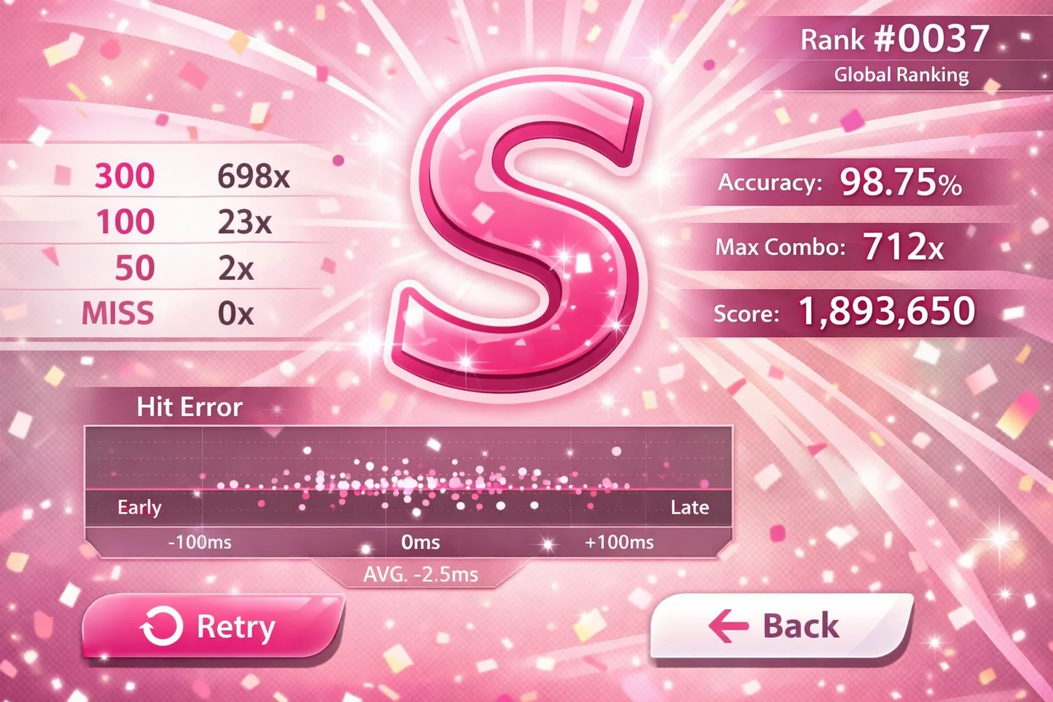 Проект предлагает различные модификаторы сложности, позволяющие как упростить, так и усложнить прохождение карт. Это делает приложение подходящим как для начинающих игроков, так для опытных ветеранов ритм-жанра.