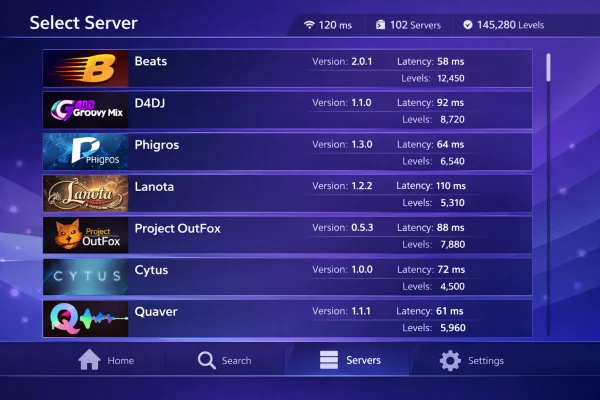 Добавьте серверы с контентом. Для этого в главном меню найдите раздел серверов, добавьте интересующие вас источники уровней. Популярные серверы включают Sekai Viewer, Chart Cyanvas, другие специализированные площадки.