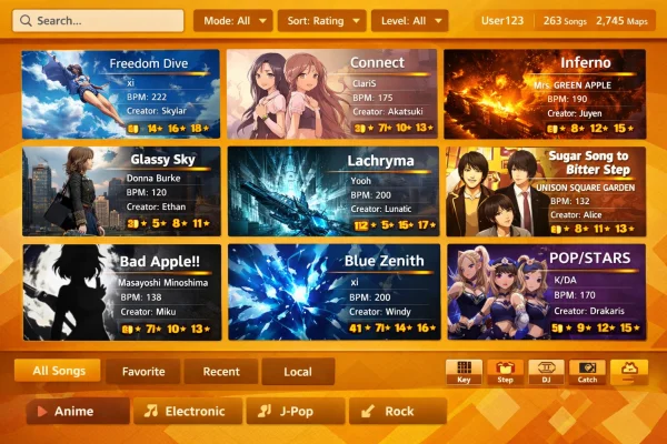 Активное сообщество — присоединившись к платформе, вы становитесь частью глобального сообщества энтузиастов ритм-развлечений. Обменивайтесь картами, соревнуйтесь за лидерство и находите новые музыкальные композиции.