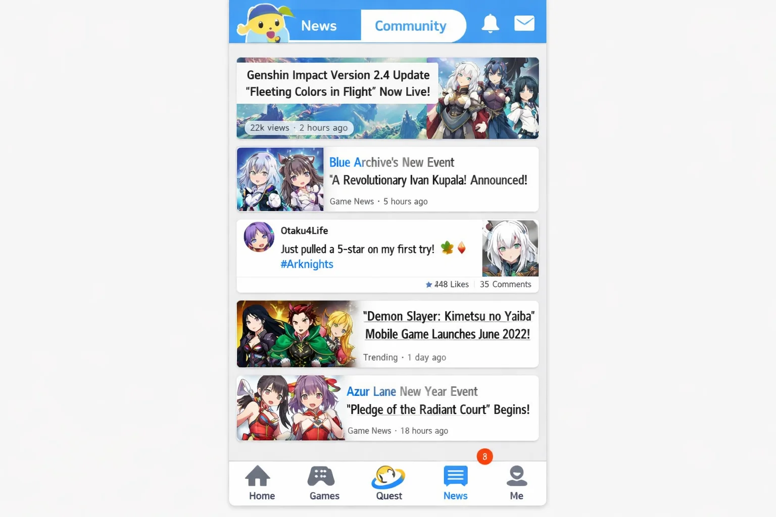 Приложение не просто предоставляет доступ к контенту — оно держит вас в курсе всех новостей из мира ACG-культуры. Вы будете получать уведомления о выходе новых релизов, обновлениях любимых проектов, специальных игровых событиях.