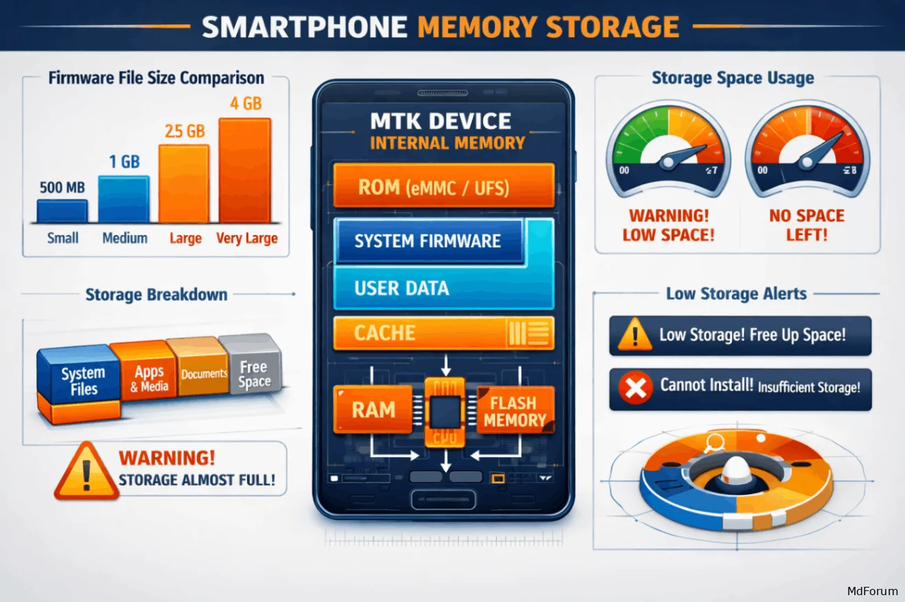 Сбой 1011 (S_NOT_ENOUGH_STORAGE_SPACE) возникает, когда размер какой-либо части прошивки превышает размер отведенного ей пространства на устройстве. Эта неполадка особенно характерна для старых или "сырых" версий SP Flash Tool.