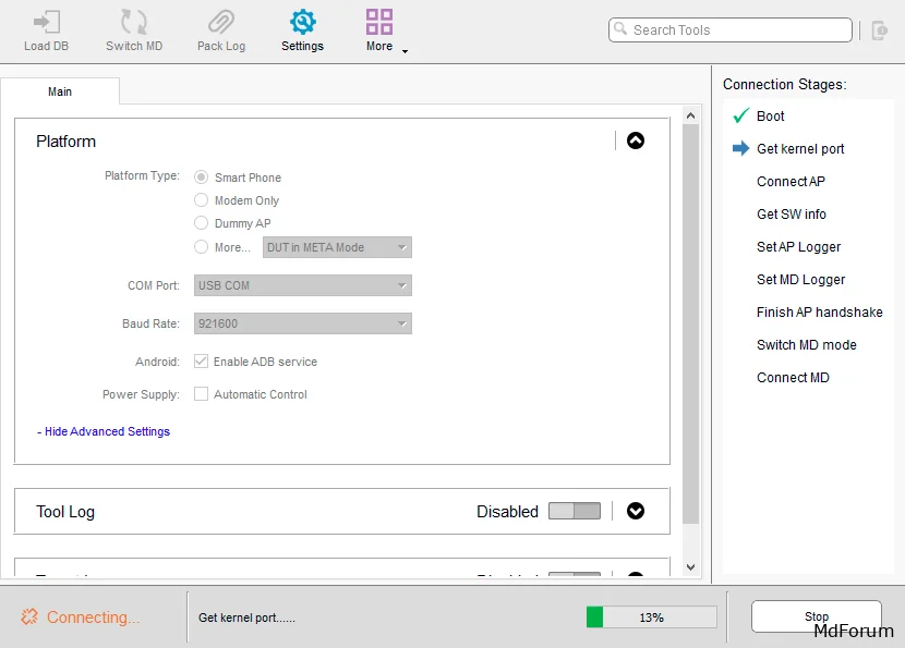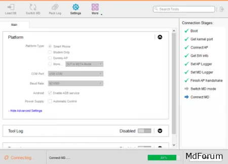 2. Запускаете Maui META. Убеждаетесь что в поле "Platform Type" выбраны: "Smart Phone", а в "COM Port": "USB COM".
