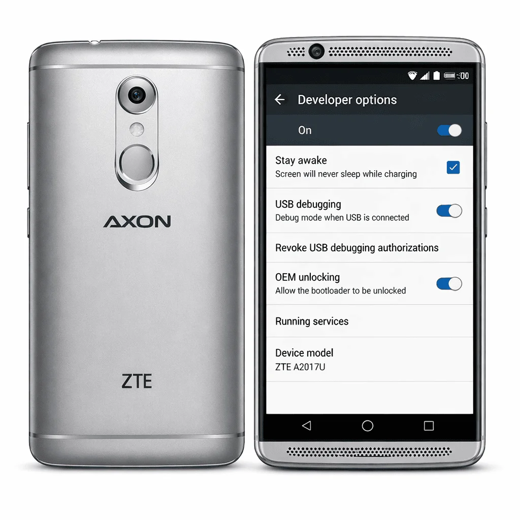 Подготовка и резервное копирование. Проверьте заряд аккумулятора и сделайте бэкап данных. Желательно включить «Режим разработчика» и активировать в нём «Отладку по USB», чтобы в дальнейшем можно было управлять телефоном через ПК (ADB/Fastboot). Кроме того, узнайте точную модель (обычно ZTE Axon 7 A2017G для международной версии).