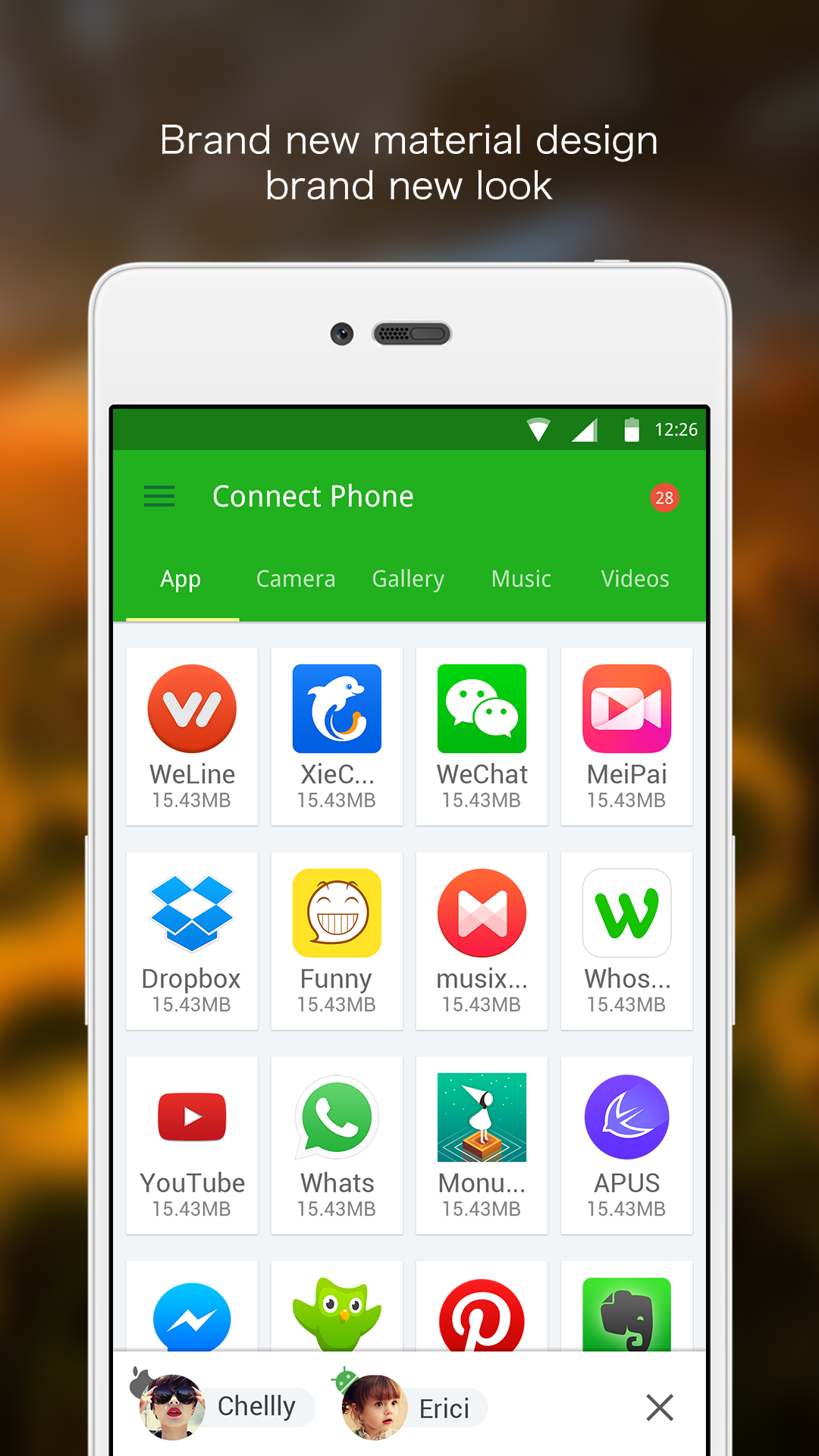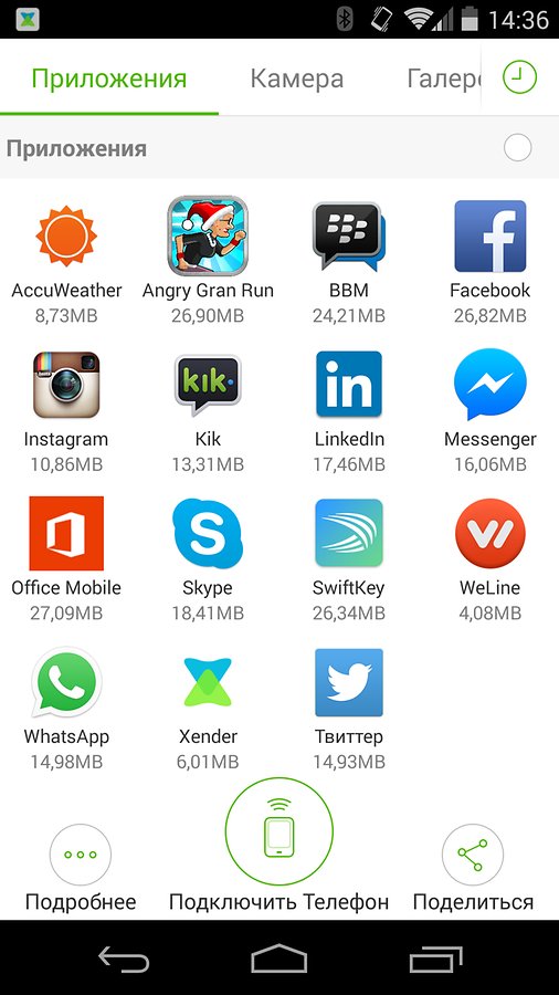 - С помощью функции "Обмена", Вы сможете легко установить Xender Вашим друзьям.