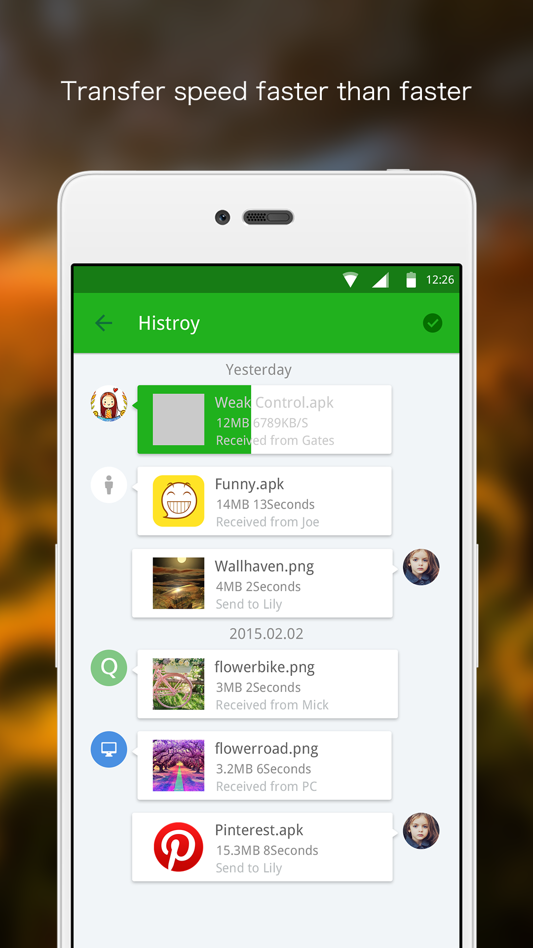 - Групповой обмен поддерживается до 5 устройств одновременно! И Вы можете отправлять и получать файлы без повторного установления соединения!