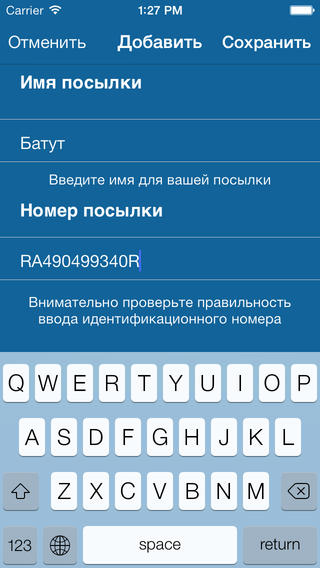 Отличительная особенность от аналогов и наиболее важная характеристика приложения - это его простота. Не нужно фильтровать почтовые службы, настраивать в настройках какие-то параметры. Просто введите номер отправления (для удобства можно придумать имя) и вы сразу получите всю необходимую информацию.