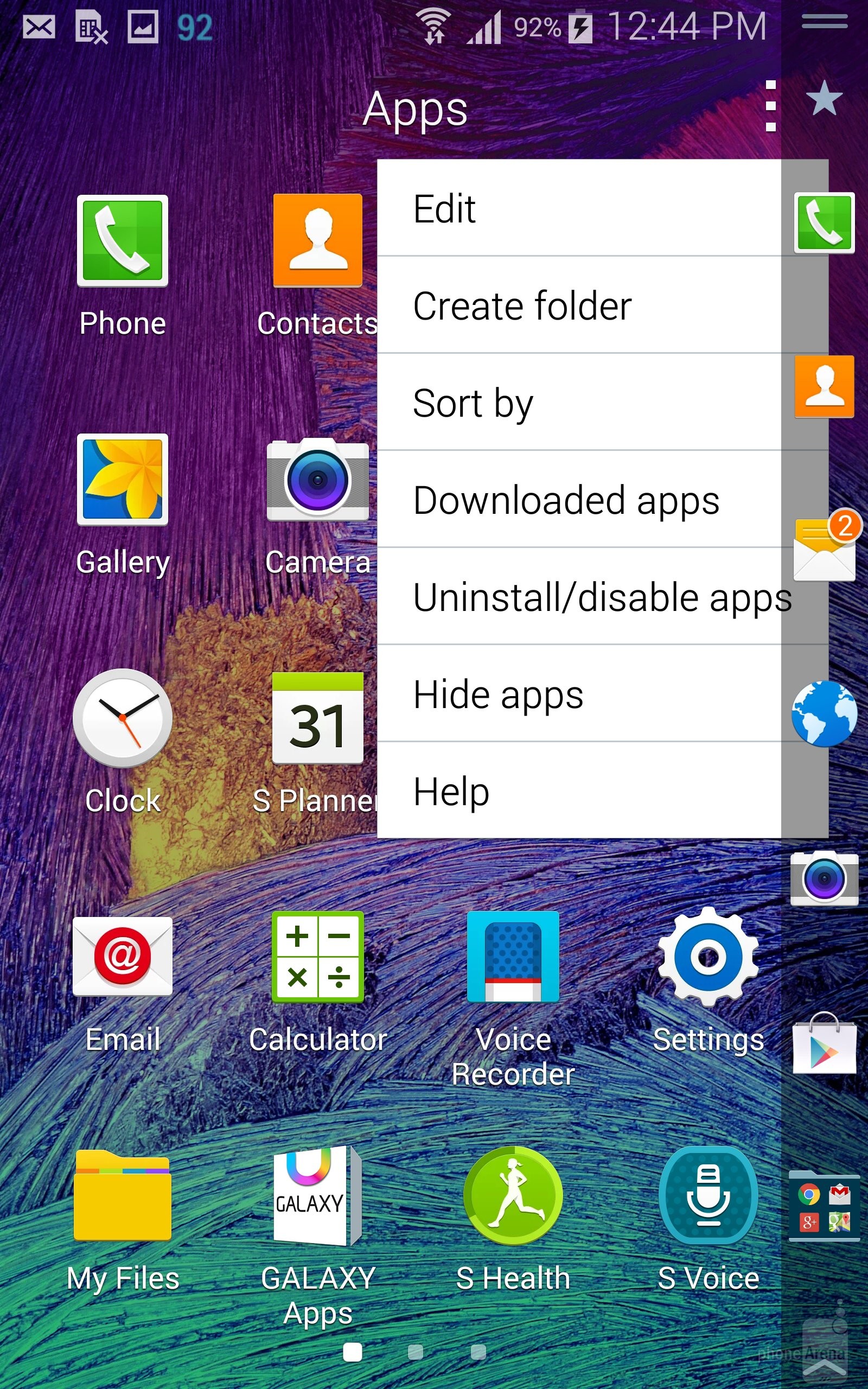 В Note Edge некоторые встроенные приложения отображаются на боковом экране с интерфейсом TouchWiz, тем самым освобождая место на главном экране