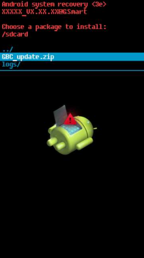 5. Выбираем пункт apply update from sdcard, выбираем точно так же в следующем меню нашу прошивку GBC_update.zip, подтверждаем установку при помощи кнопки "звук -".