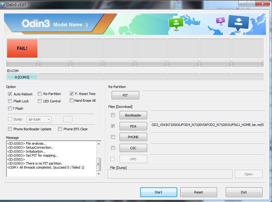 вроде все началось ставиться, и появился прогресс бар, но потом Odin выдал ошибку