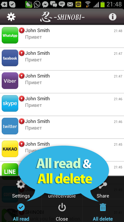 No Last Seen - приложение для андроид, которое позволяет читать сообщения, не помечая их как "прочитанные", в таких программах, как WhatsApp, Facebook, LINE, comm, KAKAO TALK, Twitter, Skype и Viber. Будь всегда в курсе событий и в тоже время незаметным.