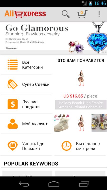 Официальное приложение от ведущей китайской площадки интернет-торговли. Ищите товары, находите скидки, связывайтесь с продавцами и проверяйте статус заказа прямо с вашего телефона. Для версий Android 4.0 и выше, рекомендую установить версию 2.0.4 HD.