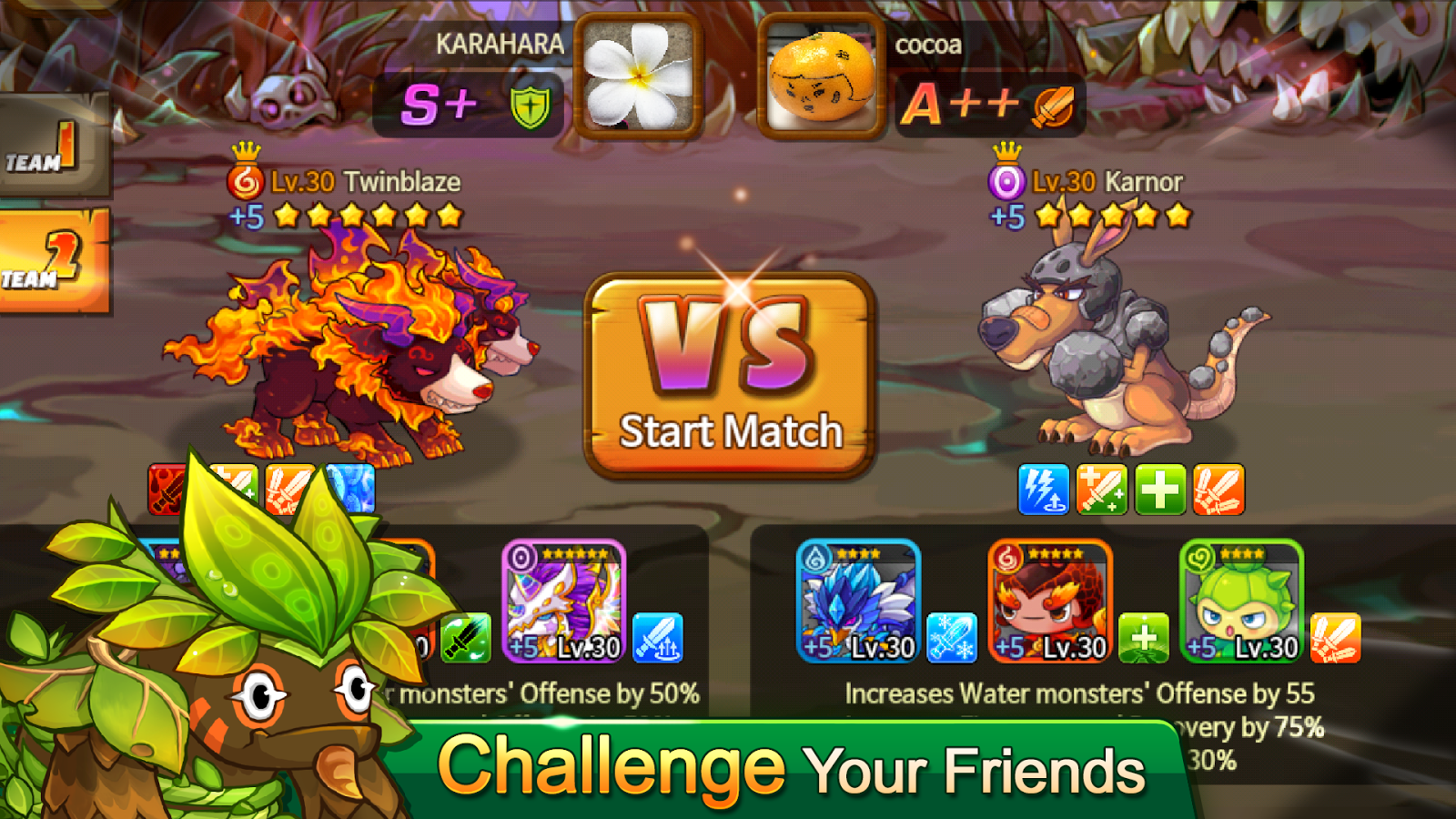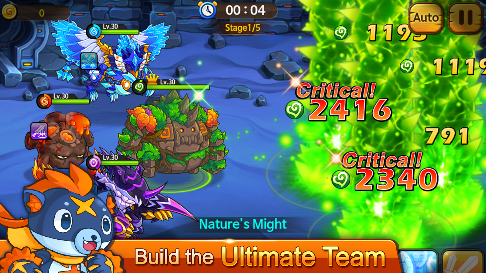 Monster Squad - Отправляйтесь в захватывающее приключение с отрядом монстров, сражаясь с различными врагами по пути. Найдите и откройте новых мощных монстров и путешествуйте с ними на различных и таинственных островах. Во время ваших поездок накопите более 500 монстров, ведь они имеют различные атрибуты: огонь, вода и земля. Развивайте своих монстров, чтобы разблокировать новых и более сильных. Эта великолепная ролевая игра не оставит вас равнодушными.
