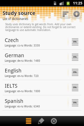 Приложение поставляется с разными языками интерфейса и набором словарей для наиболее популярных языков, таких как английский (IELTS), испанский, итальянский, португальский, французский, немецкий, русский, чешский, польский.