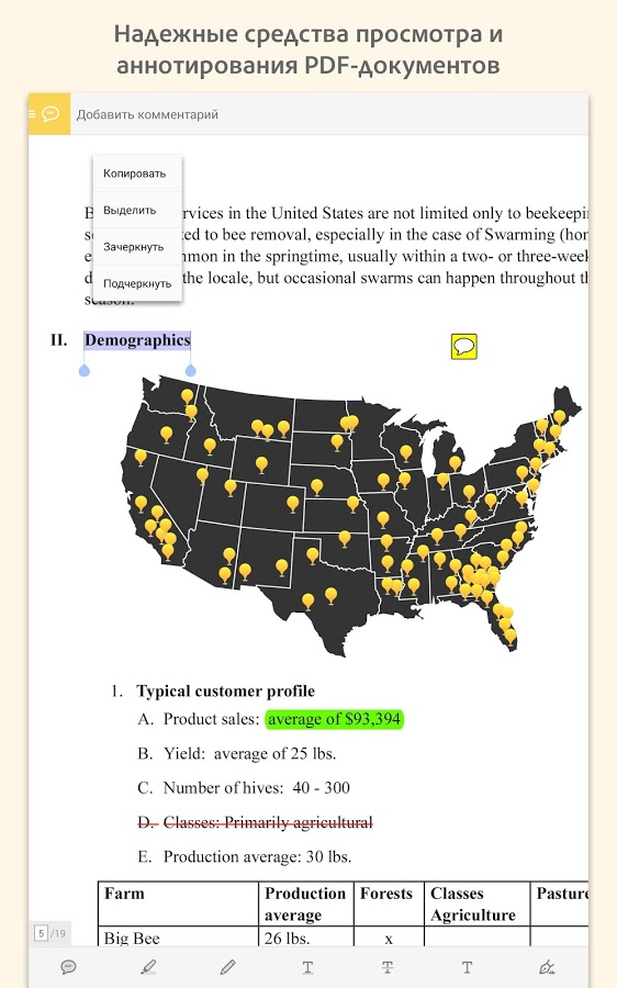 • Работа с PDF файлами с использованием жестов Multi-Touch, Pinch zoom, двойное нажатие Zoom, Flick scrolling & Panning