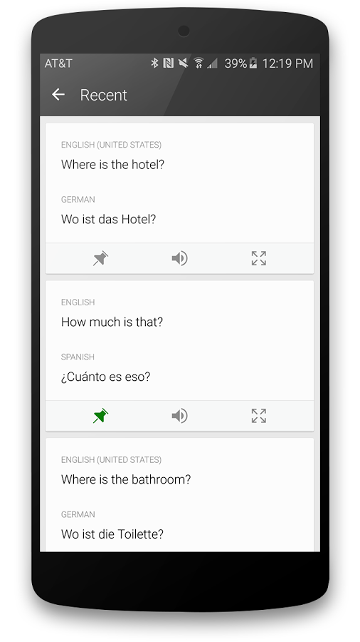 Когда за создание приложения берется такой софтверный гигант как Microsoft, мимо него проходить нельзя. Что же получилось у компании с переводчиком? А, собственно, ничего особенного, у Microsoft Translator функциональность, аналогичная конкурентам: поддерживается 50 языков, слова и выражения можно вводить как с клавиатуры, так и голосом; если вы не уверены в правильности своего произношения, переводчик может воспроизвести эту фразу для вас, а если знаете, что переведенная фраза вам еще пригодится — можете сохранить её.