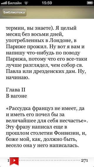 Приложение при помощи синтеза русской речи озвучивает оффлайн любые текстовые документы (.txt, .doc, .fb2), которые вы можете добавить из iTunes или с веб-сайта.
