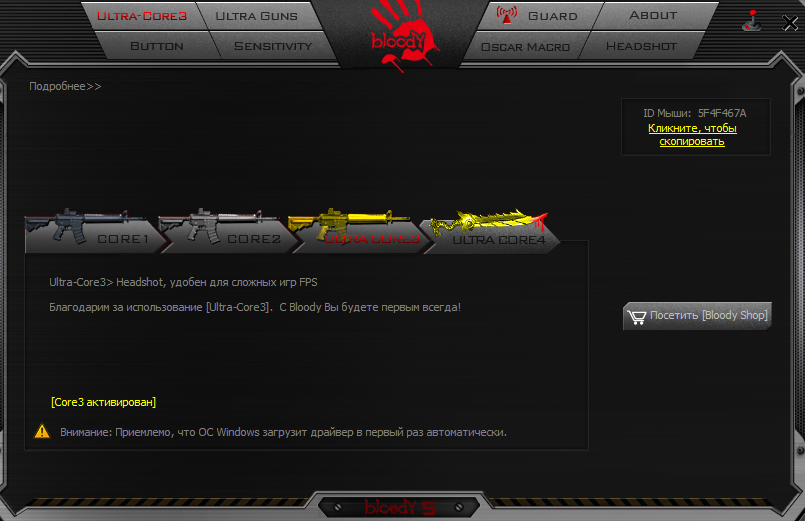 так заходим в BloodyV5 и жмем скопировать далее заходим в кей ген и вставляем номер мыши . Далее заходим в Bloody, активируем ключик и радуемся )