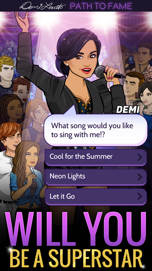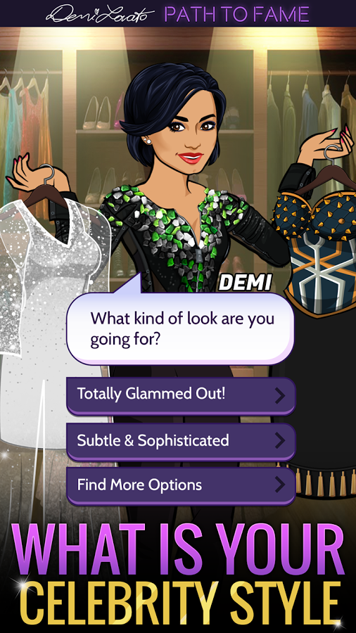 Demi Lovato: Path to Fame – история популярной певицы Деми Ловато, вместе с которой вы отправитесь в увлекательный тур по всему миру. Вам предстоит выбрать себе героиню, подобрав для нее имя, внешность и одежду. Посещайте концерты певицы, вечеринки и танцы, а также попробуйте построить свою карьеру в шоу-бизнесе. Примеряйте на свою героиню разные костюмы и платья для посещения шумных вечеринок, а также встречайтесь с различными персонажами и общайтесь с ними, ведя диалоги. Ходите на свидания с разными кавалерами и постарайтесь найти свою любовь. Яркая и насыщенная приключениями и встречами жизнь ждет вас в этой игре.