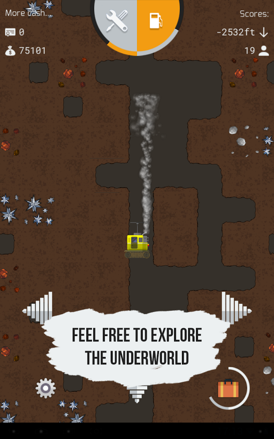 Earth Explore – игра, в которой вам предстоит стать первооткрывателем и вгрызаться в недра земли на бурильной машине. Погрузитесь с головой в эту увлекательную игру и открывайте для себя новые тайны и ценную руду, которая таит в себе земля. Исследуйте все области которые представленные в игре, наслаждаясь бесконечными глубинами и добывайте ценные минералы, которые пригодятся ученным для исследований. Экспериментируйте и устанавливайте новые обновления для бурильной машины, чтобы добиться богатства и успеха. Играйте со своими друзьями и выясните кто среди вас самый лучший шахтер. Впереди вас ждут различные обновления в виде новых функций, машин, предметов для поиска и окружающих сред.