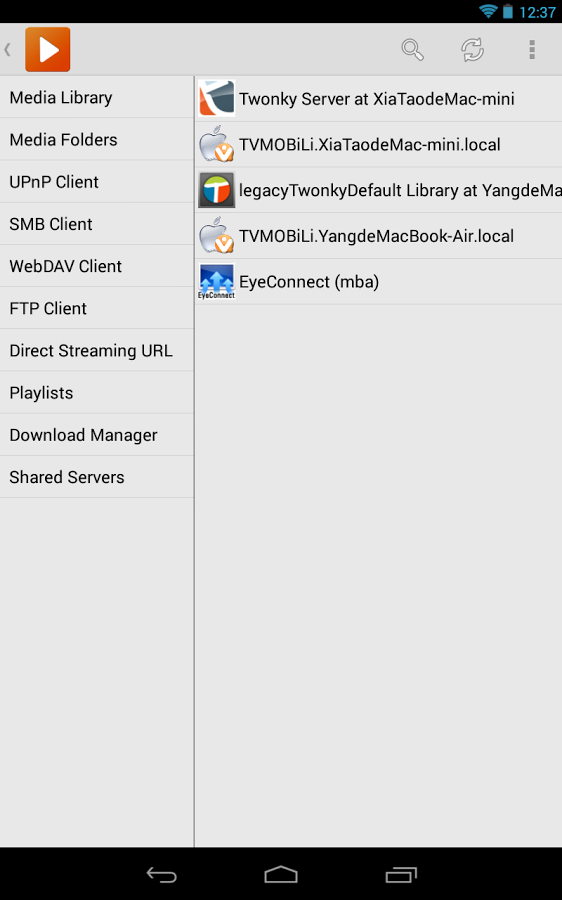 - Встроенный WebDAV клиент (Длительное нажатие на данную сетевую папку, затем выберите "Воспроизвести все по ссылкам из этого каталога", плейлист будет сгенерирован автоматически), HTTP и HTTPS поддерживается