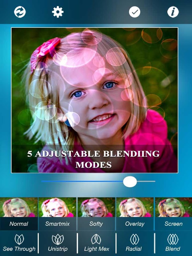 В программе несколько режимов смешивания и эффектов. Для работы вам надо выбрать две фотографии, после выбираем режим смешивания, далее настраиваем эффекты, сохраняем и радуемся.