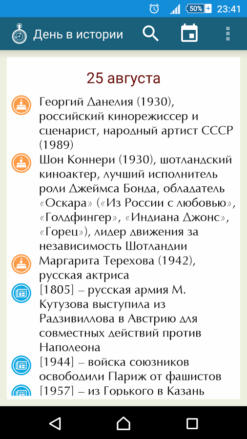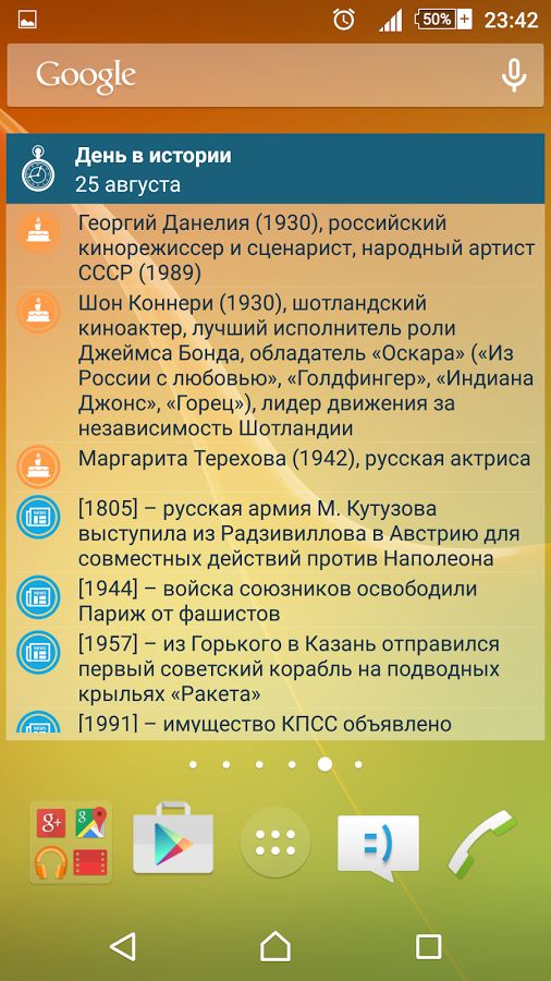 Этот небольшой виджет каждый день выводит подборку самых значимых событий, произошедших в разные годы. В список входят исторические факты и персоналии, а если интересует не конкретная дата, а событие или человек можно воспользоваться встроенным поиском. Так что, если вы давно искали способ блеснуть эрудицией — перед вами отличное подспорье.