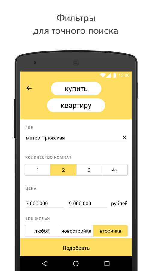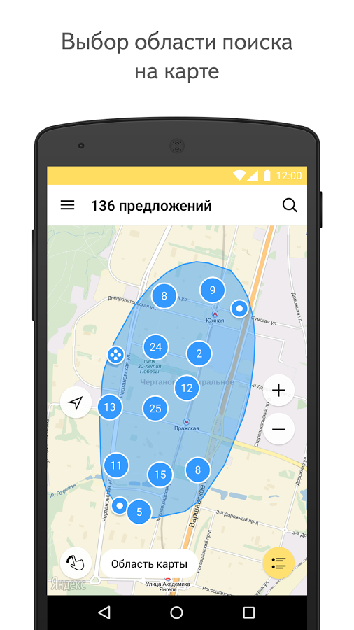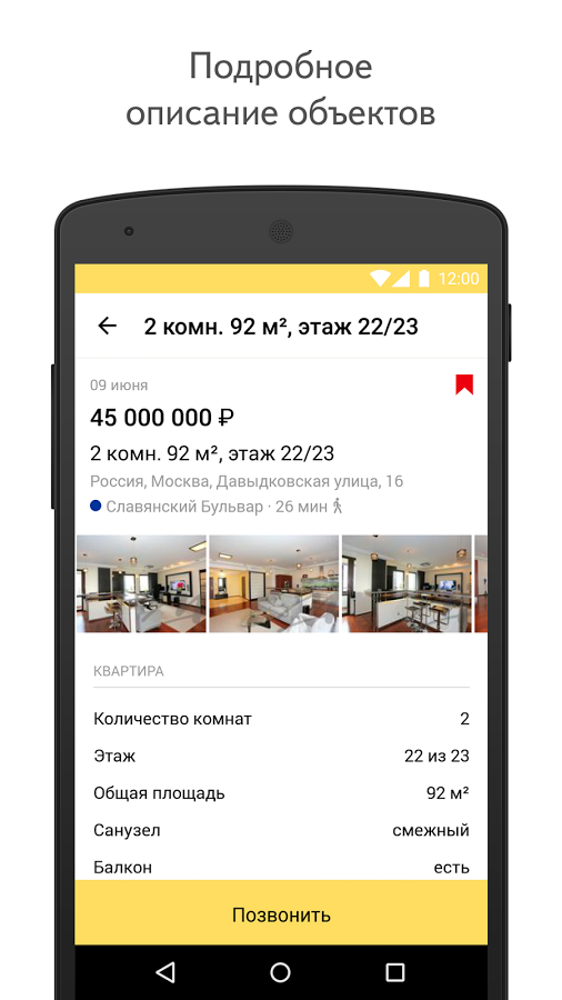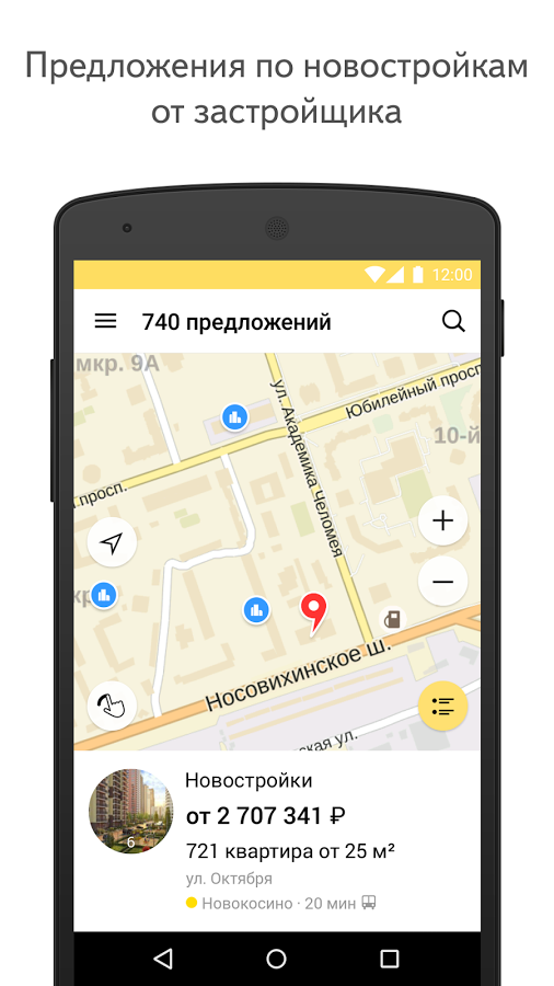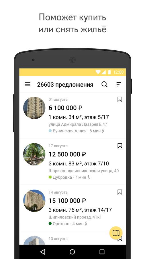 Купить или снять жильё поможет Яндекс.Недвижимость. В приложении более 1 000 000 объявлений от агентов и собственников: комнаты, квартиры, дома и участки по всей России. Укажите подходящие параметры и выбирайте объявления из списка или на карте города. Позвонить насчёт заинтересовавшего предложения можно прямо из приложения, не выписывая телефоны на листочек.