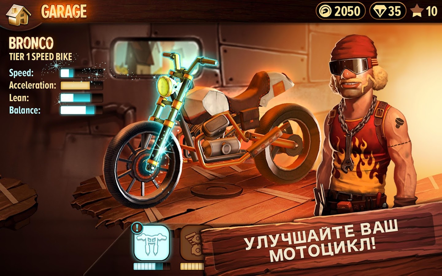ПРОНЕСИТЕСЬ на мотоцикле по миру, полному приключений, безумных персонажей и НЕВЕРОЯТНО ЗАХВАТЫВАЮЩИХ ГОНОЧНЫХ ТРАСС!