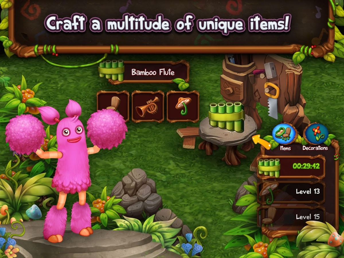 My Singing Monsters DawnOfFire - интересная развлекательная игра на андроид. Создайте и вырастите маленьких музыкальных монстров на чудо-островах. Каждый монстрик поёт свою мелодию, а вместе у них получается довольно забавная мелодия. Каждый из островов имеет свою собственную заразительную мелодию в исполнении ваших монстриков.