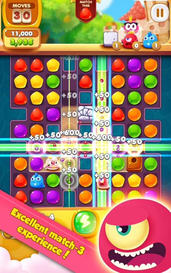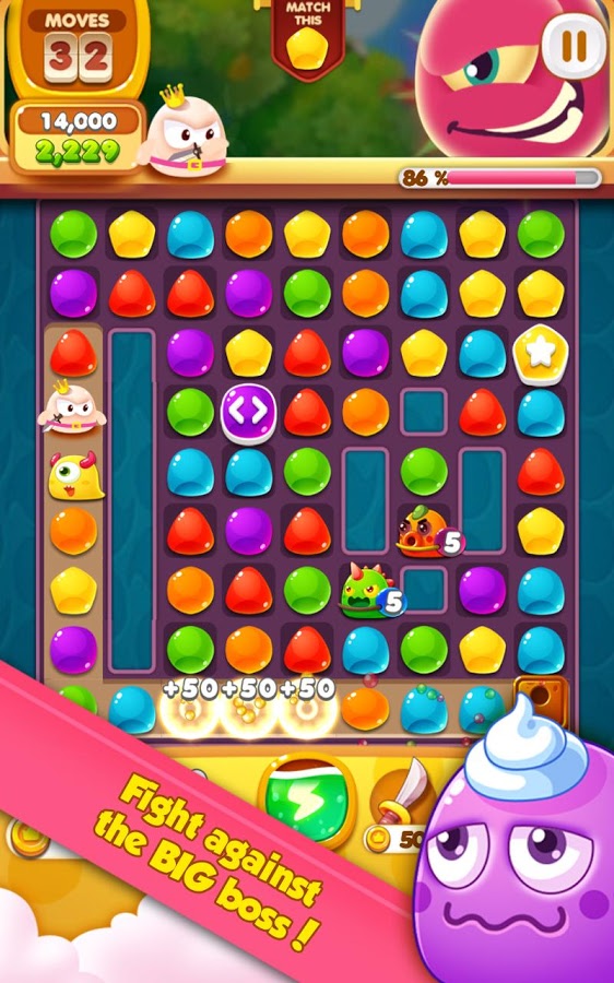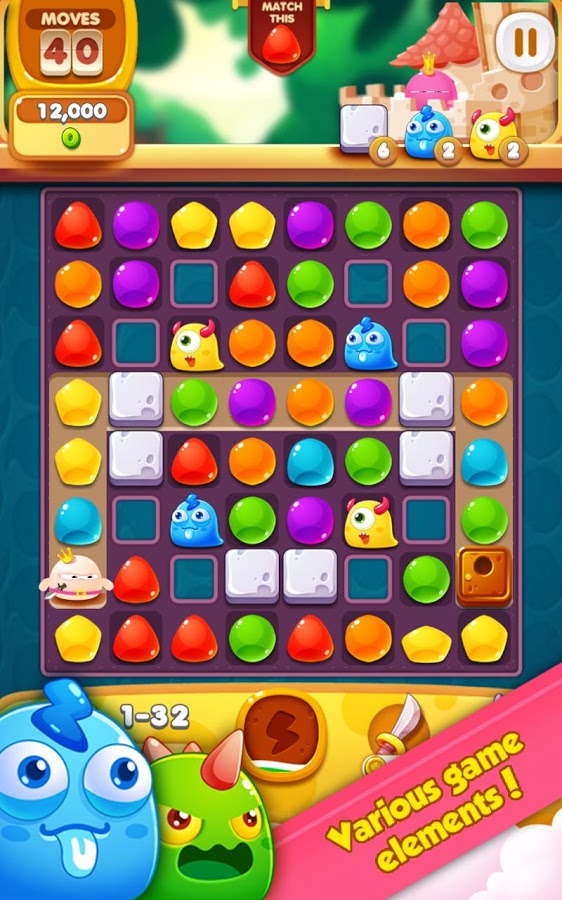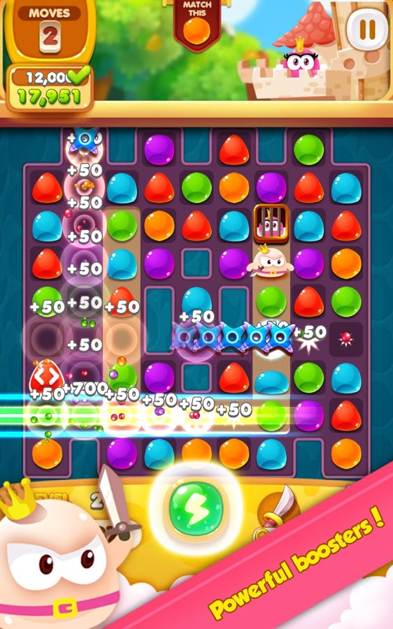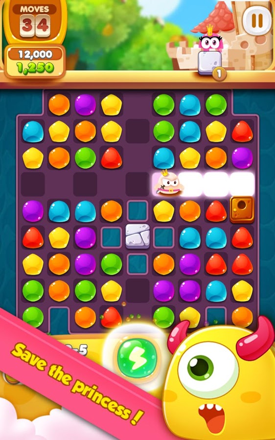 Quark Saga: Princess Rescue – увлекательная игра? в которой вы попадете в волшебную страну разноцветных желейных конфет. В этой игре вы будете помогать принцу спасать принцессу, которую похитил колдун. На вашем пути встанет большое количество монстров и мощных боссов, которые будут мешать вам подобраться к принцессе, вашей задачей будет составлять как можно длиннее ряд из желейных конфет, чтобы победить врагов. Взрывайте как можно больше конфет и помогайте принцу активировать свои силы и победить одним ударом всех врагов. Также для быстрой игры используйте бонусы, которые помогут вам пройти все 100 уровней и помочь вернуть принцессу.