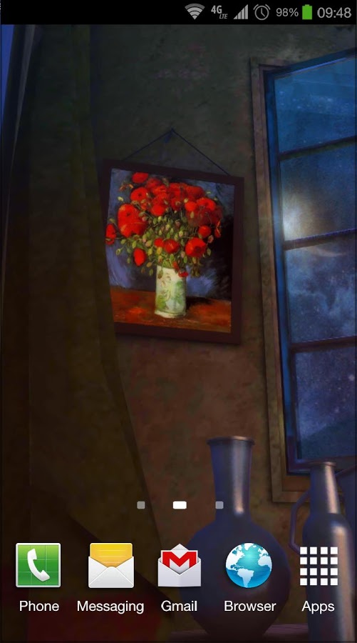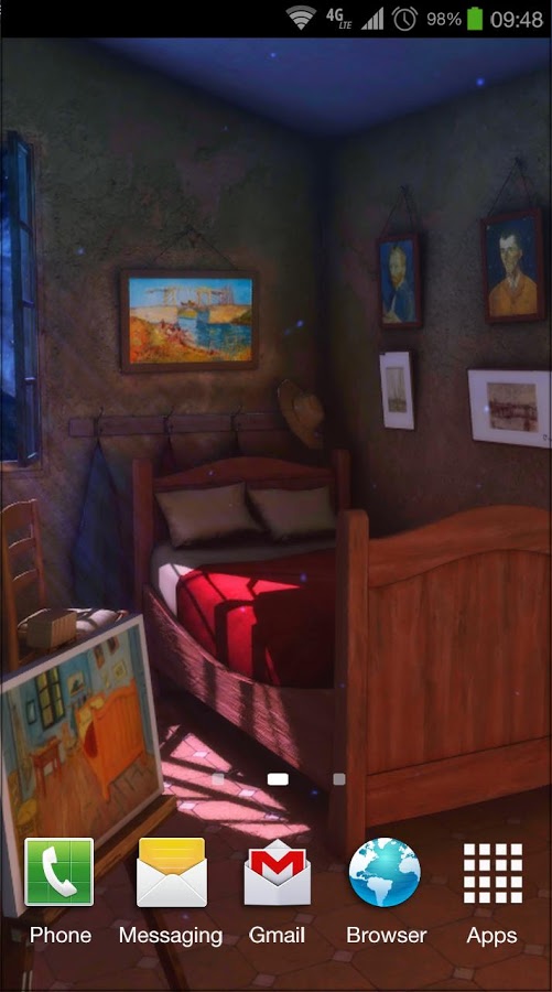 Art Alive: Night 3D – живые обои, сделанные по знаменитой картине Ван Гога «Спальня в Арле». Благодаря этим обоям вы устроите тур по спальне, которая нарисована таким образом, что вы почувствуете себя стоящим в ней. Вращайте камеру и просматривайте все детали, имеющиеся в комнате. Эти обои порадуют вас 10 рисунками и 9 расположениями камер. Окунитесь в настоящее искусство и с помощью настроек меняйте картины, стены, полы и двери в спальне, принося что-то свое в комнату, нарисованную знаменитым художником. Установите эти живые обои в свой телефон или планшет и станьте немного ближе к настоящему искусству и насладитесь им вдоволь.