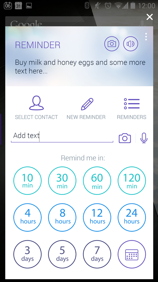 Вы можете создавать напоминания 1 - 2 нажатиями: