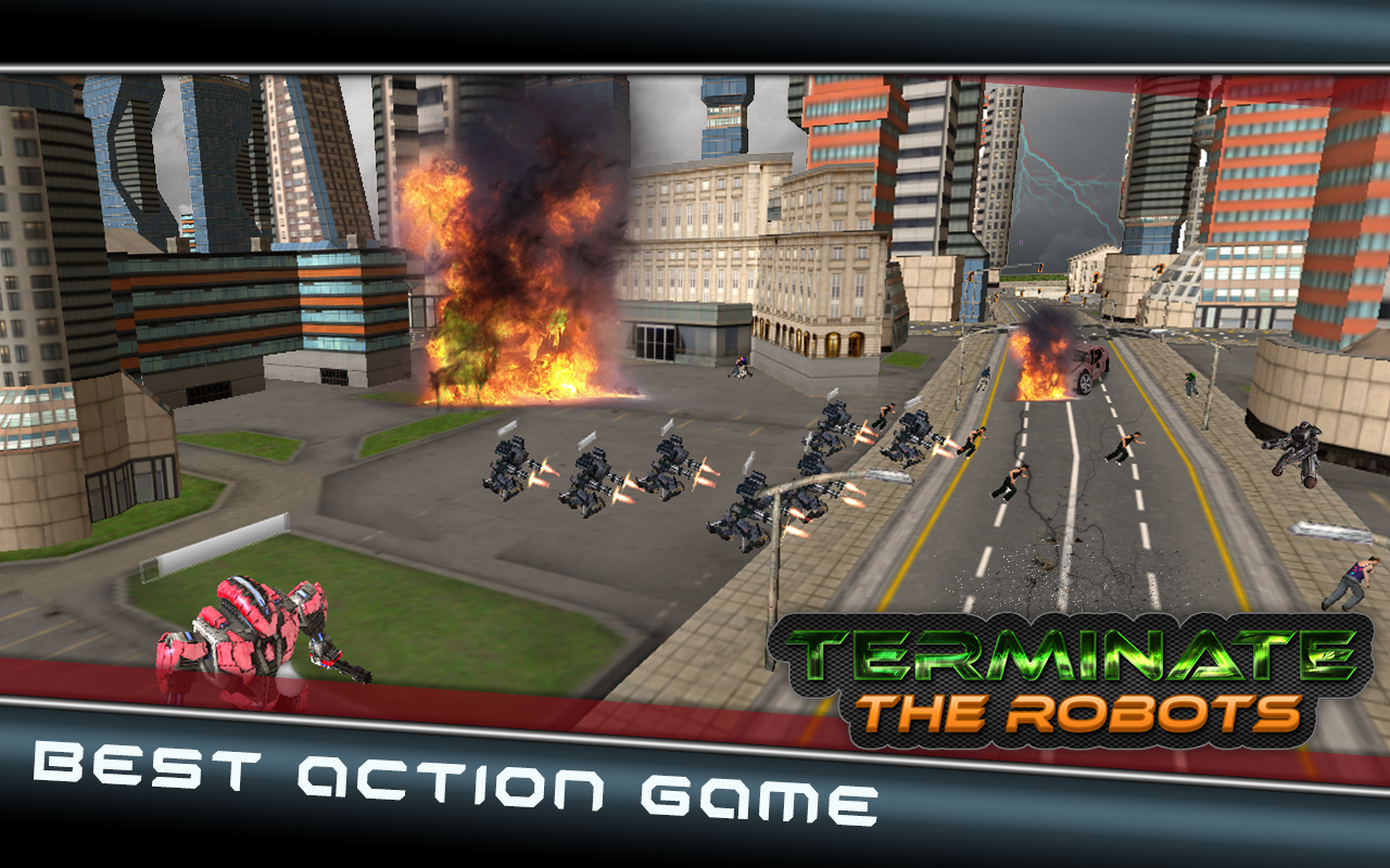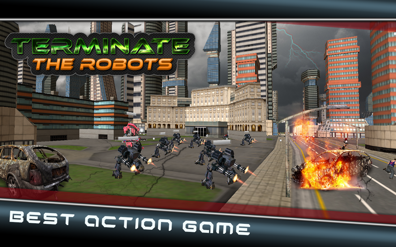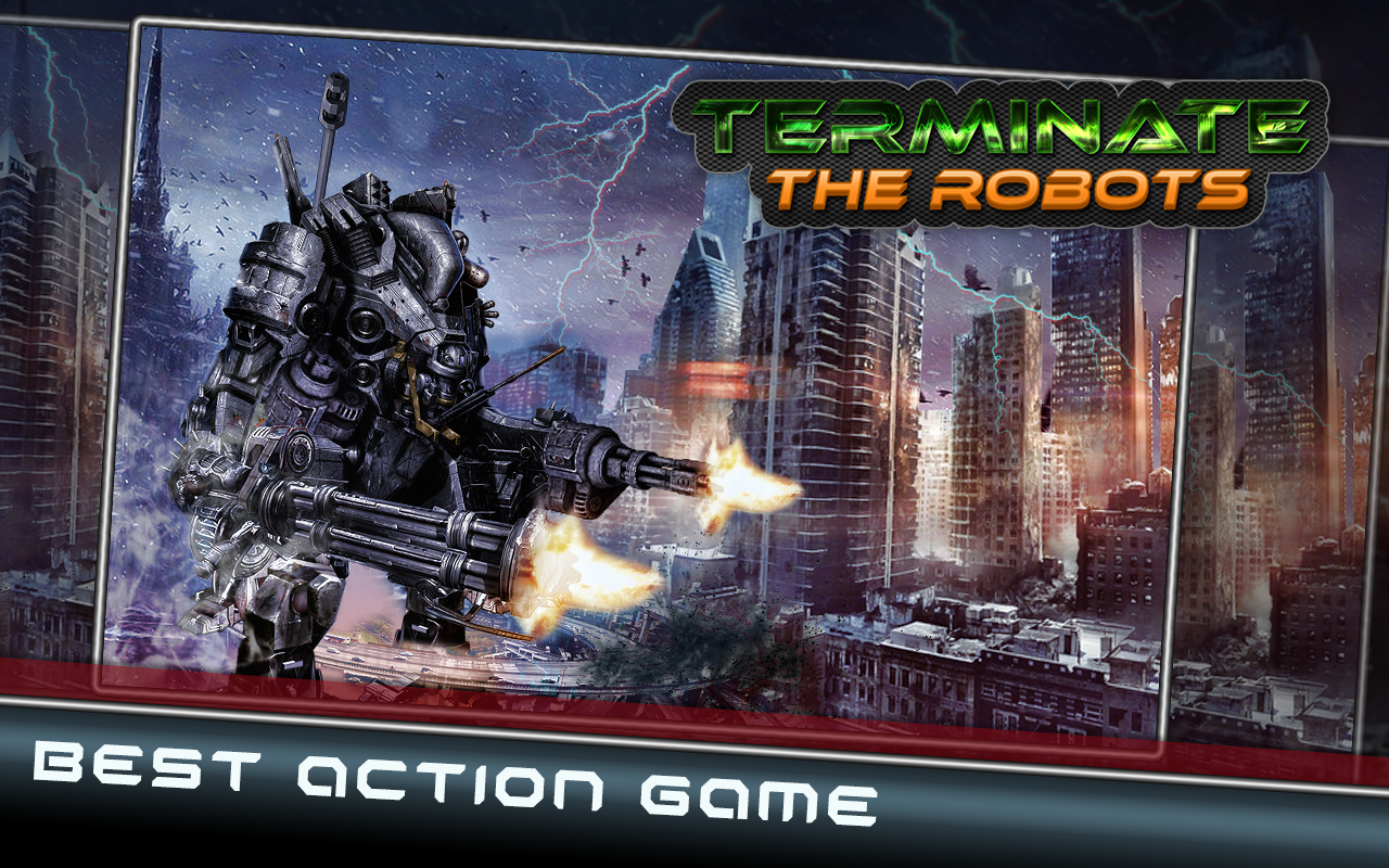 Terminate The Robots – на дворе 2020 год, планета Марс была разрушена и пришельцы захотели вторгнуться на землю и уничтожить всё человечество. В игре вам выпал шанс спасти Землю от неминуемой гибели. Новое сверх секретное оружие поможет вам уничтожать роботов одного за одним. Их атаки главным образом приходятся на большие скопления людей и общественные места, в основном там мы и будем вести бои. Возможно по началу у вас не будет получатся грамотно вести боевые действия, но в дальнейшем у вас всё получится.
