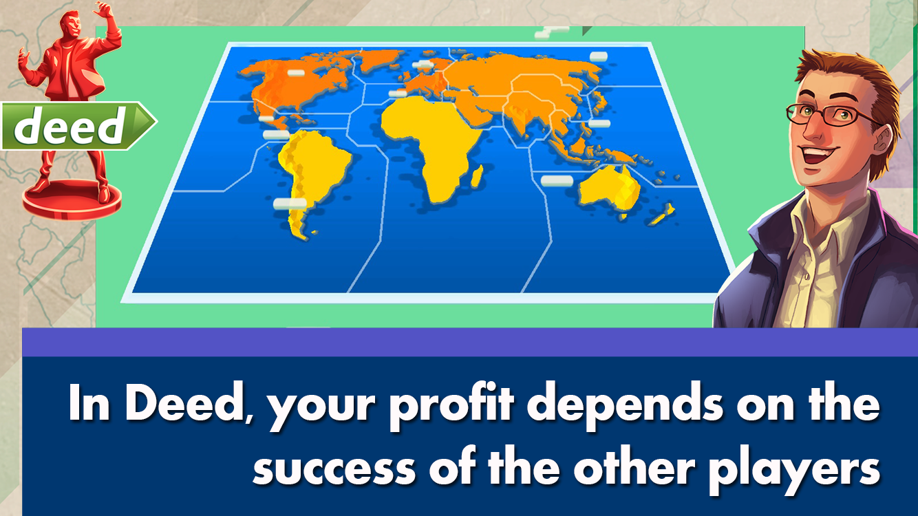 Deed - The Game – интеллектуальный бизнес без вашего вмешательства работать не будет. Берём в руки свой гаджет, устанавливаем игру и вперёд зарабатывать миллионы. Играть можно как в автономном, так и в многопользовательском режиме. Вашей задачей является реализовать по максимуму инвестиционных проектов, в компании друзей сделать это становится легче. Используя 5 основных ресурсов на планете: Люди, Знание, Технологии, природных ресурсы и финансы; вы сможете добиться того, что вам раньше даже и не снилось. Отличная настольная игра для широкого круга игроков.