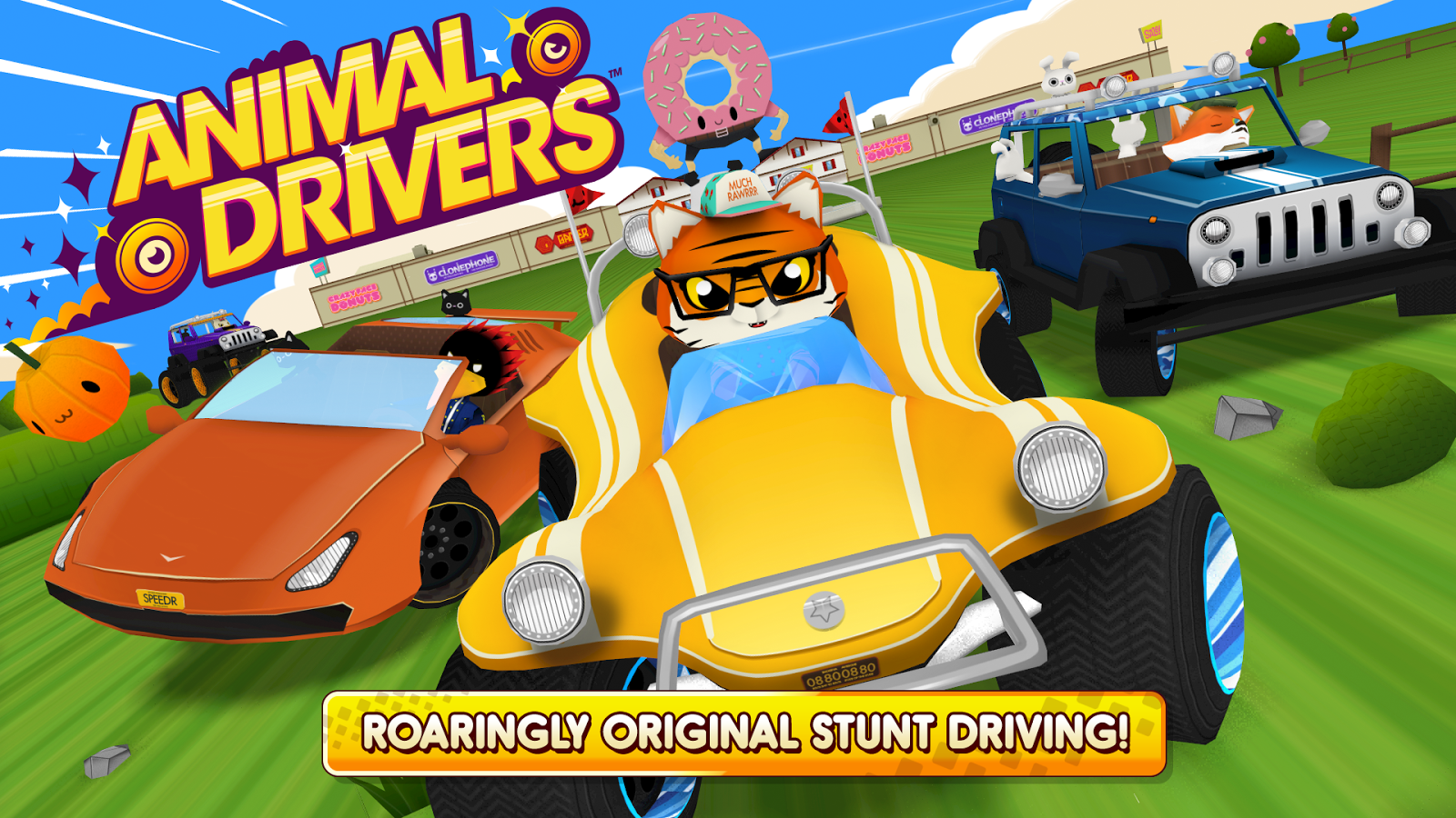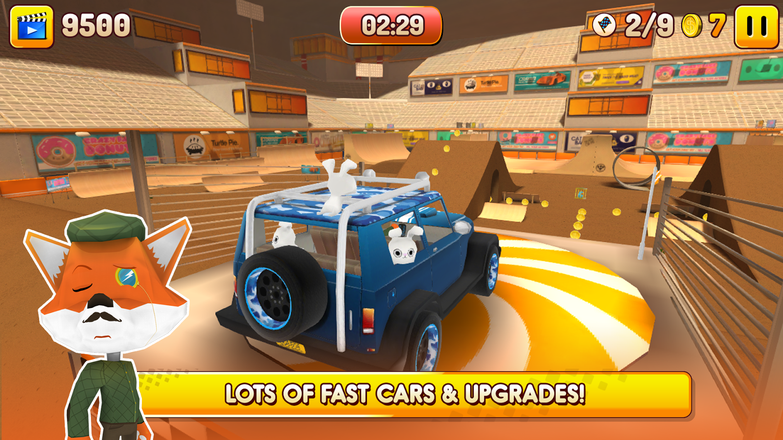 nimal Drivers – динамичные гонки на андроид, где вам предстоит ездить по опасным трассам. Откройте для себя уникальный мир с невероятными трассами, забавными героями и различными автомобилями. Садитесь за руль одного из автомобилей и гоняйте на огромной скорости по извилистым трассам, преодолевая все препятствия на своем пути, включая трамплины, кольца и петли. Проделывайте головокружительные трюки и получайте за это очки и бонусы, которые вы сможете потратить на открытие новых трасс, на которых вас ждут неповторимыми испытаниями. Приобретайте новые машины и разблокируйте всех животных в этой игре.