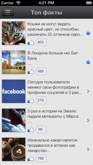 *Система рейтинга для фактов. Вы можете просматривать скольким людям понравился факт и непосредственно голосовать за него.