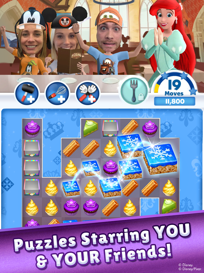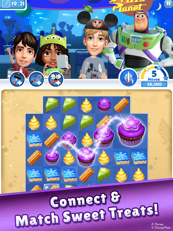 «Волшебные сладости» – это более 100 аппетитных уровней! В захватывающем путешествии по всему миру вам составят компанию Микки, Минни, Ариэль, Белль, Базз Лайтер, Вуди и другие герои любимых фильмов Disney. Вместе с ними вы будете создавать уникальные десерты и удивлять гостей неожиданными комбинациями сладостей.
