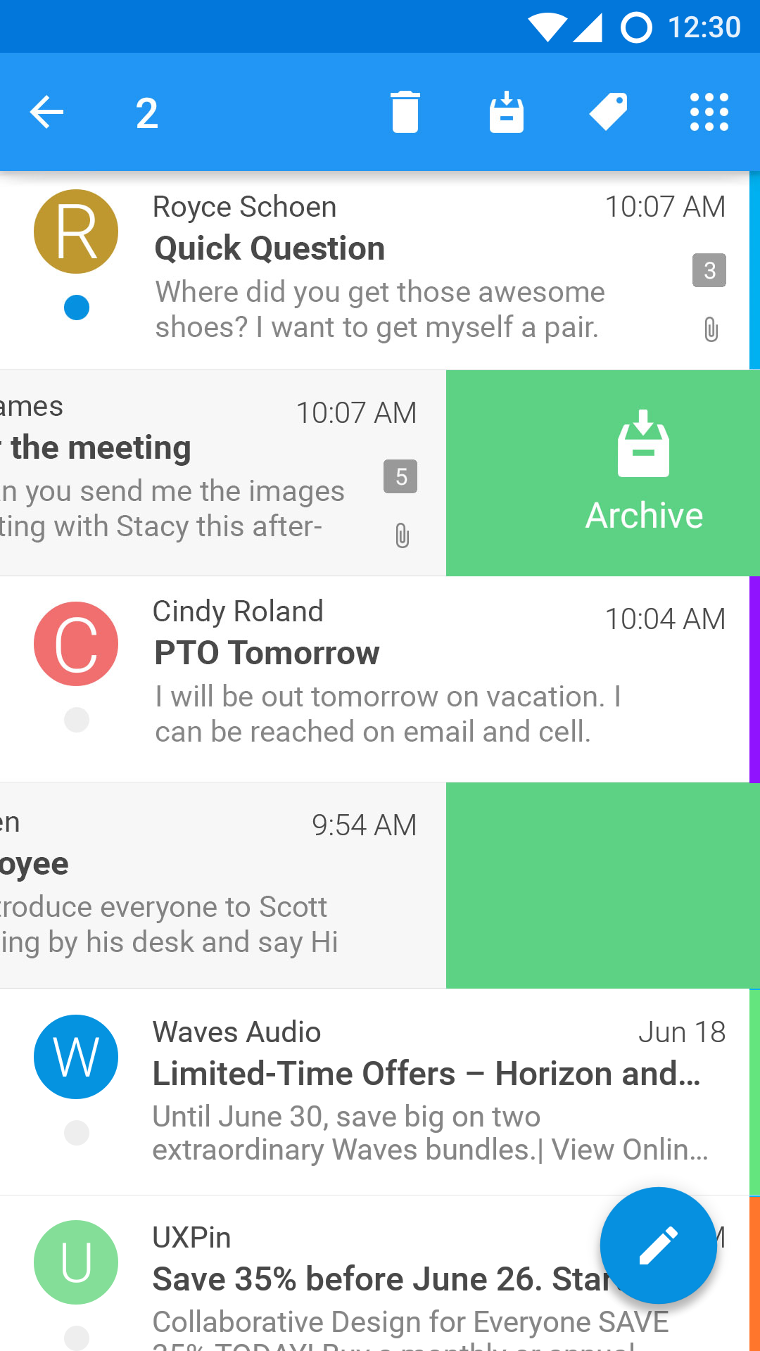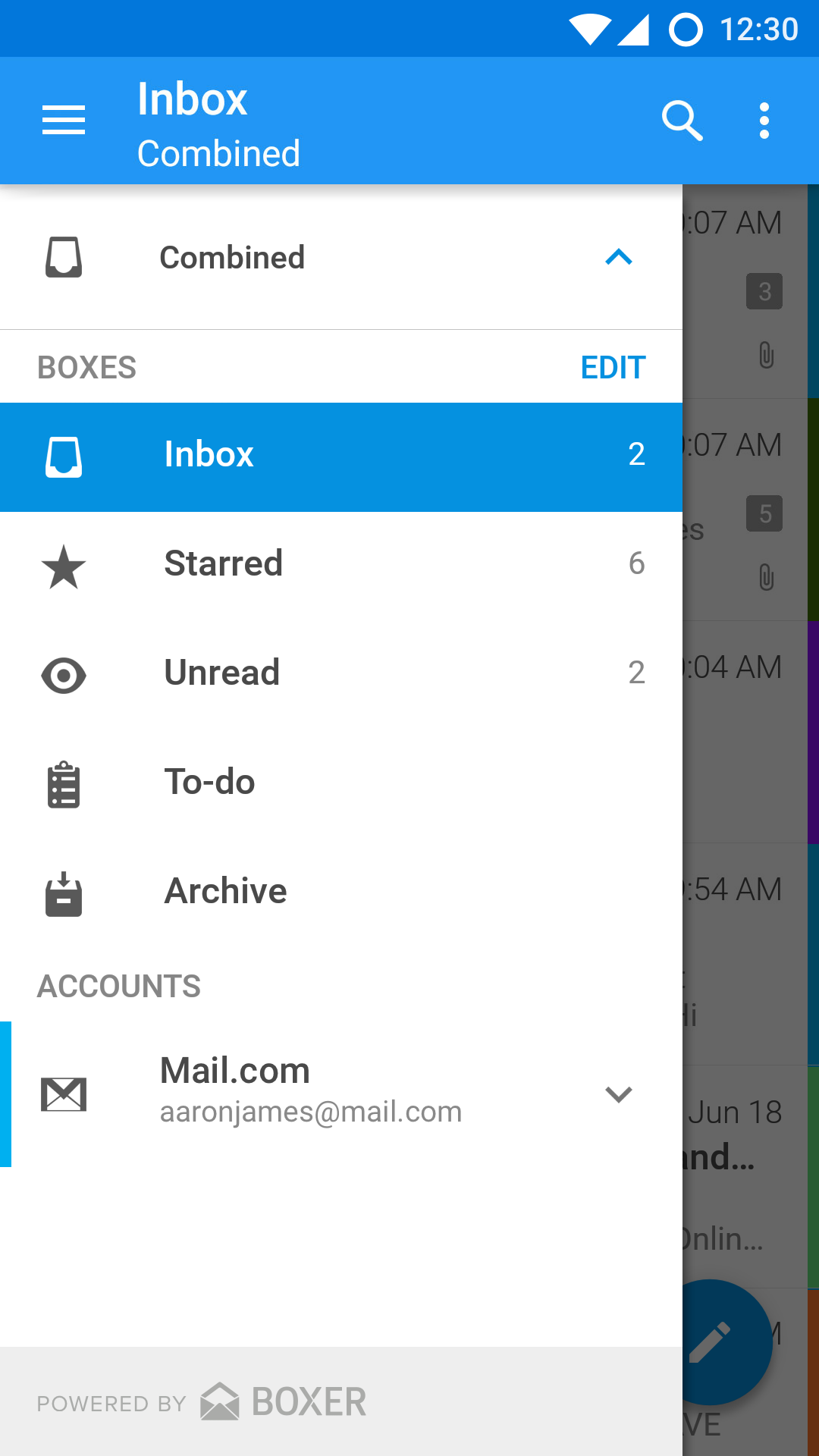 Стандартный клиент для управления электронными письмами Boxer позволяет синхронизировать сразу несколько аккаунтов.