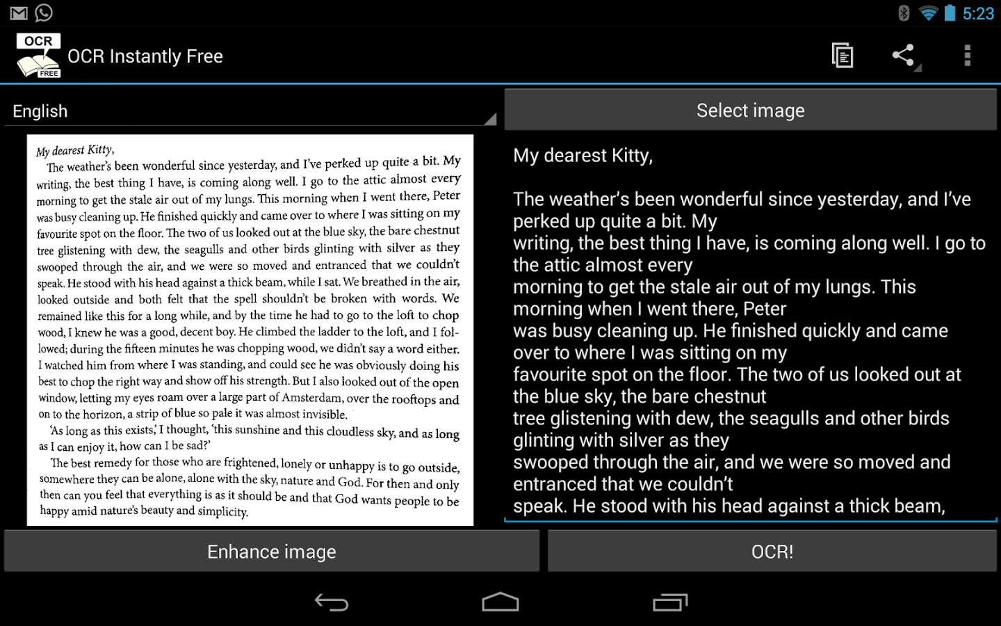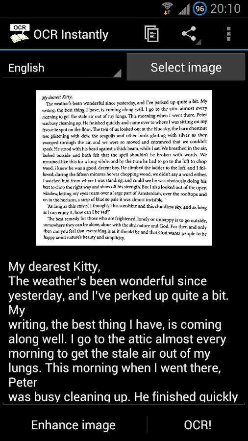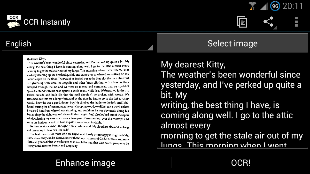 OCR Instantly может похвастаться не только высоким качеством распознавания текстов, но и возможностью работать оффлайн, инструментами для улучшения исходного изображения или его кадрирования, если попал ненужный текст.