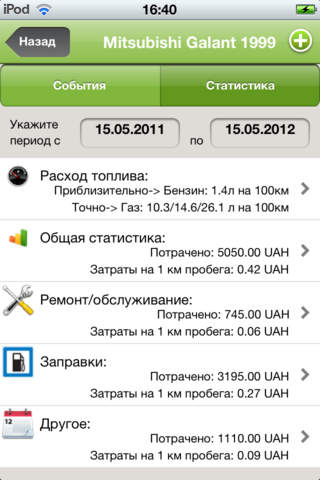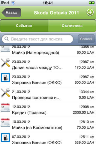 Приложение помогает вести учет всех затрат, расходов и событий, происходящих с автомобилем. Напоминает о техническом обслуживании и других предстоящих событиях. Позволяет просматривать статистику владения автомобилем как в цифрах, так и в графиках.