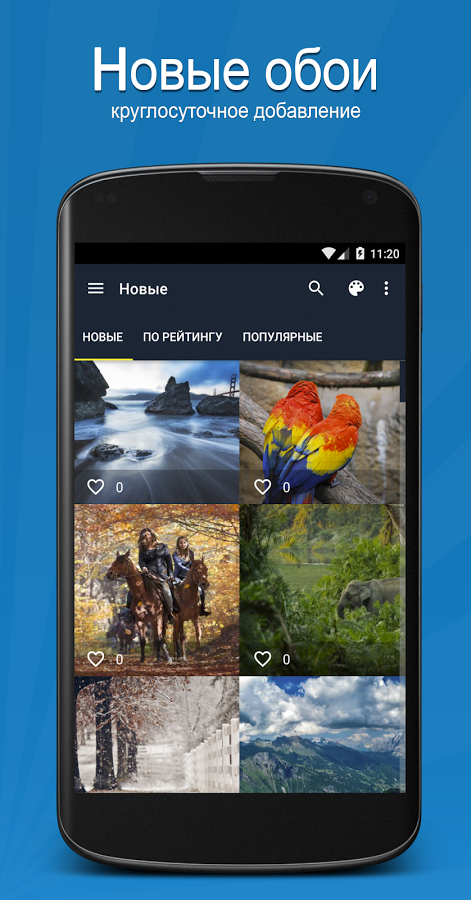 Приложение откроет перед Вами огромный мир превосходных HD обоев для телефона или планшета. Картинки проходят ручную проверку и сортировку перед попаданием в каталог, что гарантирует высокое качество заставок. Новые обои добавляются круглосуточно 24/7/365.