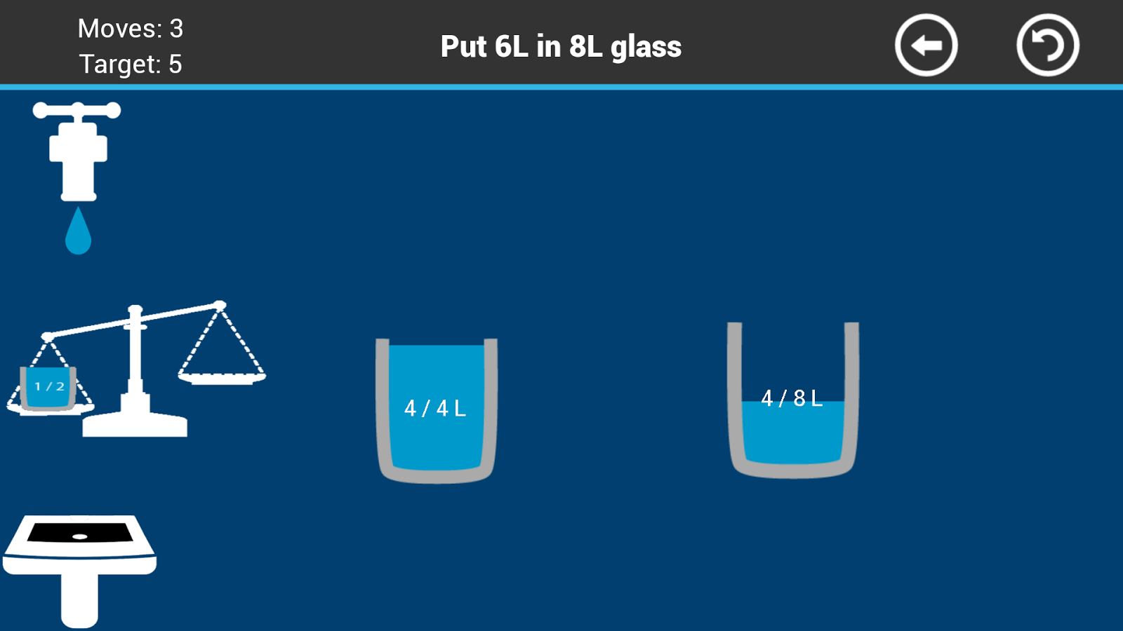 Water Capacity - простая, но захватывающая игра-головоломка. Эта игра создана для того, чтобы вы провели время с пользой. Заставьте ваше серое вещество работать на полную. Принцип игры прост. Вам дают задание наполнить стакан, но это не так просто. Ведь наполнить нужно определенный стакан и только определенным количеством воды. С каждым новым уровнем задания будут становиться все сложнее. Предметов, которые вам нужно будет использовать, будет все больше. Данная игра поможет вам не просто скоротать время, но и развить ваши логические способности.