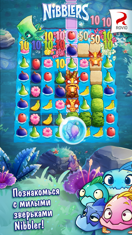АППЕТИТНАЯ НОВАЯ игра три-в-ряд c МИЛЫМИ персонажами и СВЕЖИМИ ФРУКТОВЫМИ головоломками от создателей серии игр ANGRY BIRDS. Познакомься со зверьками NIBBLER — рыбоподобными малышами, которые едят только ВКУСНЫЕ фрукты! А какие тут фрукты... Ням-ням!