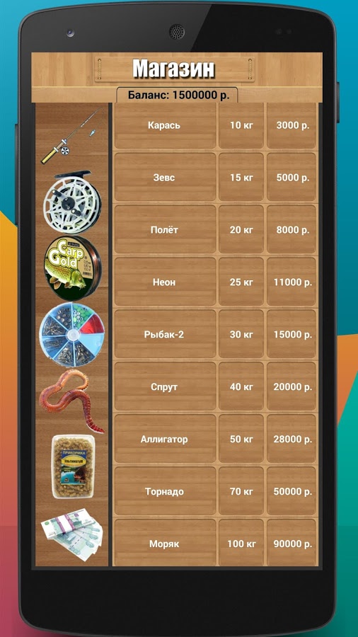 - Широкий выбор снастей