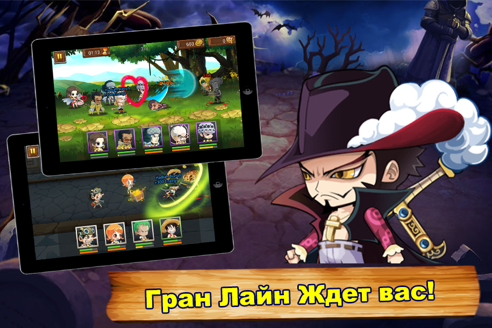 • Прямо из манги: присоединитесь к Луффи и помогите осуществить его мечту стать королем пиратов, соберите сильную команду для вашего путешествия по морям!