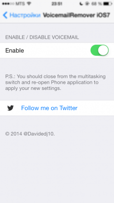 VoicemailRemoveriOS7 - твик, который удалит кнопку автоотчетчика при наборе номера.