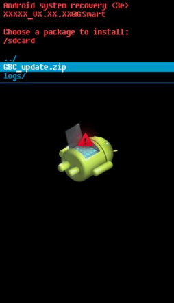 6. Выберите пункт apply update from sdcard, а затем выберите архив GBC_update.zip, дальше начнётся прошивка, не прерывайте данный процесс ни коим образом.