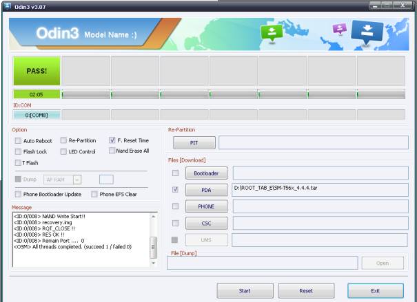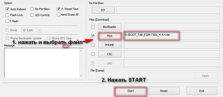 5. Запустить Odin3.exe из папки ROOT_TAB_E