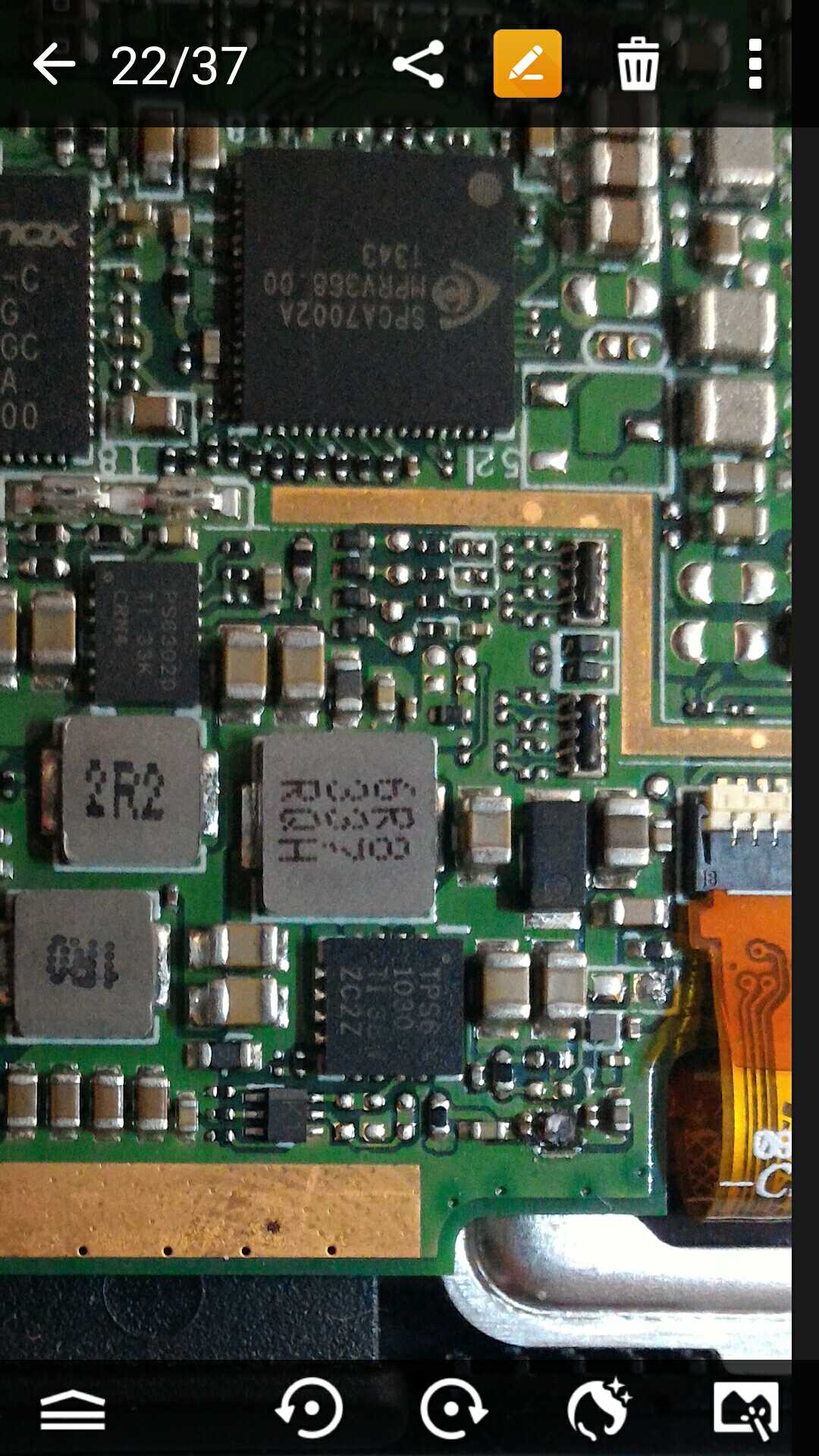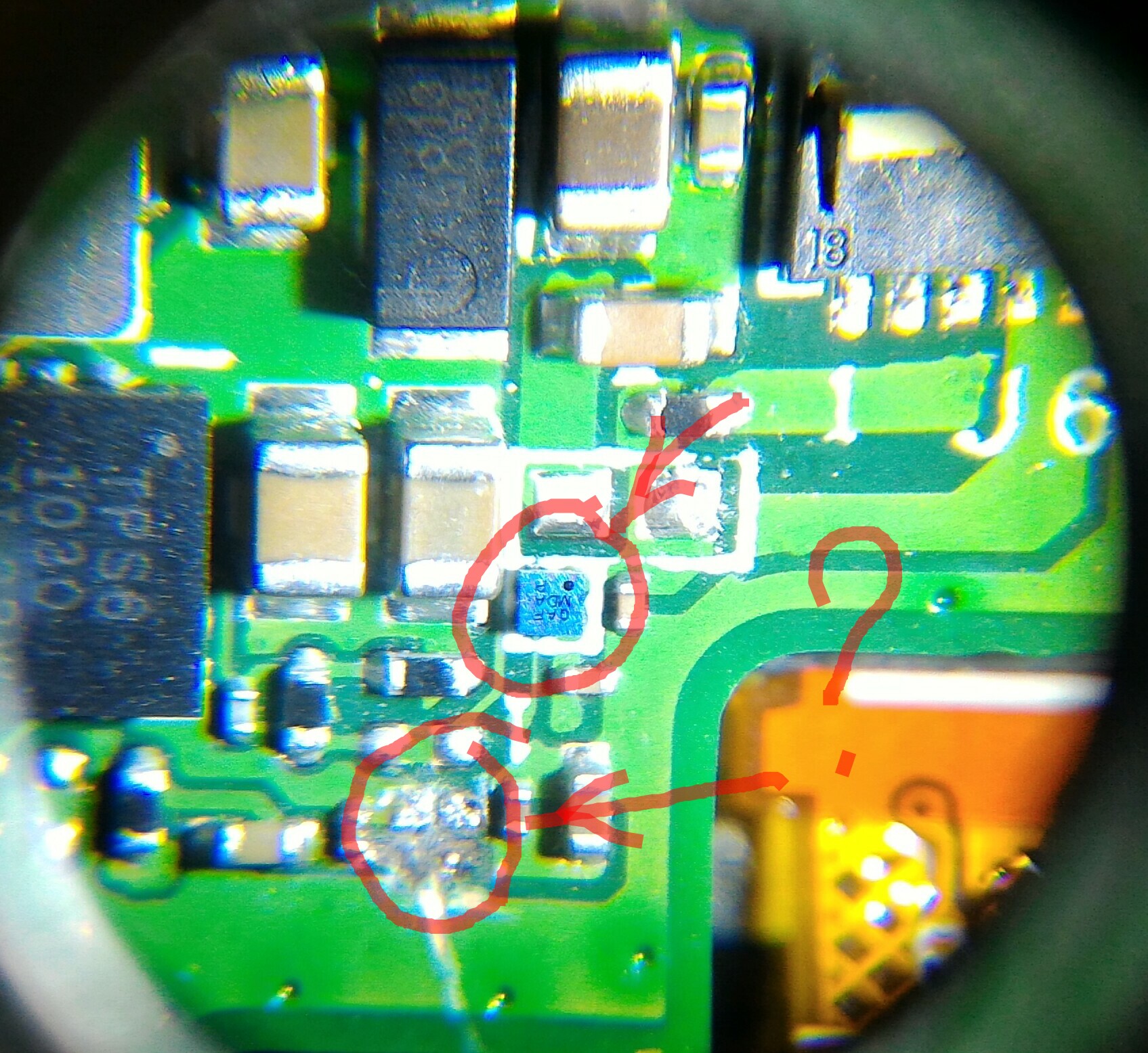 После замены тачскрина обнаружил сгоревшую микросхему.На фото видно место где была микросхема.Рядом точно такая. Что из себя представляет она???Поиск по даташит результатов не дал.Надпись на стекляшки QAF MDA P. ЭТО всё находится возле микросхемы TPS 61030.в правом нижнем углу.